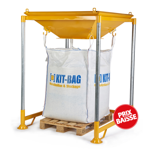 Cette station de remplissage, de fabrication française, permet de remplir un conteneur souple et de le retirer facilement et rapidement en utilisant la palette placée dessous.